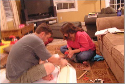 Time to cover the rail. Having two people for this part really helps it go quickly. I have no idea how I could have done this part myself.