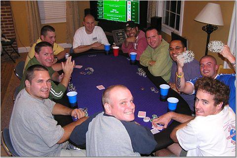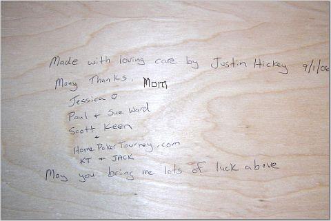 I had a tournament shortly after. This was the final table. I got nothing but compliments on how comfortable it was to play on. The poor saps at table 2 were playing on a plastic folding table. They had serious table envy. I'm already contemplating building a second one. The sad puppy dog faces at table 2 were more then I could handle.