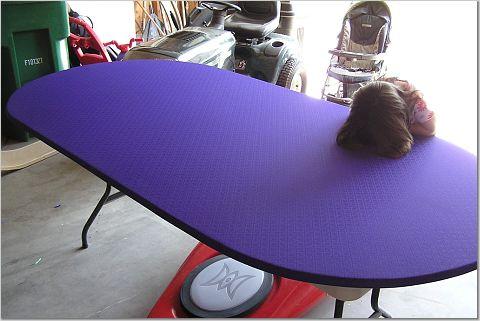 Then get under the opposite side and do the same thing. This time pull the cloth a little to ensure a wrinkle free surface. Do the same thing for the rest of the table. Staple one side snugly, then pull and staple the opposite side. It's not a difficult process, just time consuming. Don't Rush, Speed Kills.