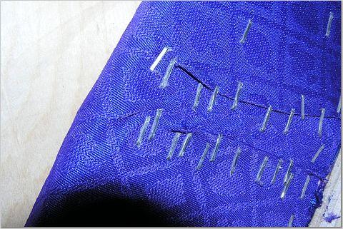When doing the corners, you have to make little folds on the underside of the table. It's kind of like wrapping a Christmas Present with a staple gun. Use lots of staples. If you make mistakes, (when you make mistakes), use a small flat head screwdriver to carefully pry the staples out. Use a hammer to nail in the staples that are are not flush with the wood. When you're done take a razor and cut off the excess fabric along the base of the second piece of wood.